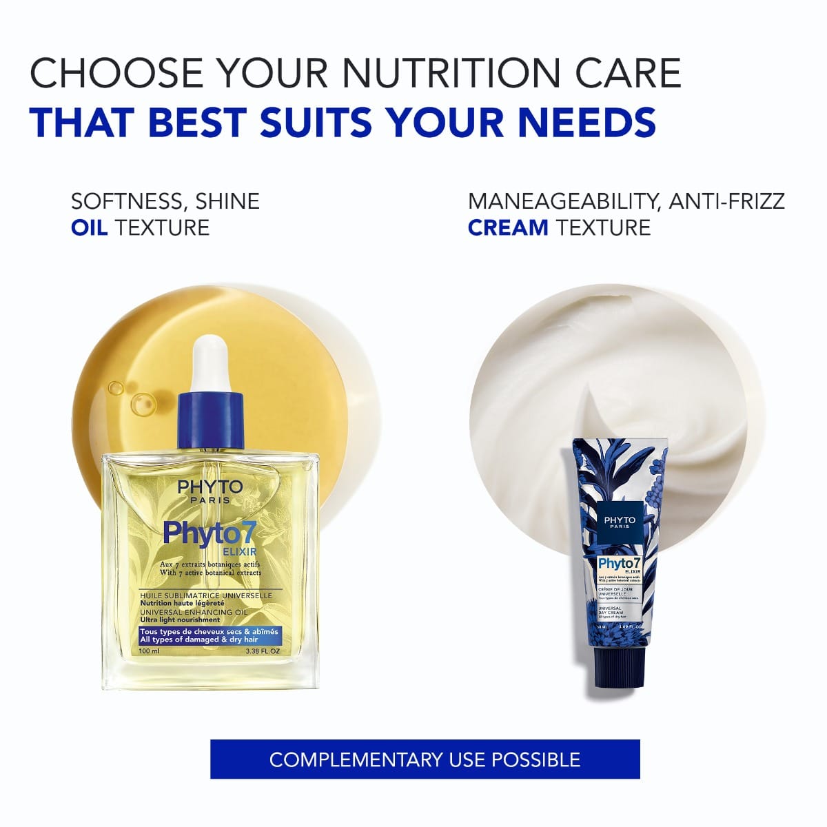 La crema universale adatta a tutti i tipi di capelli secchi che li trasforma istantaneamente rendendoli morbidi e setosi. La sua texture fondente dal profumo irresistibile nutre intensamente senza appesantire, disciplina e garantisce 48 ore* di protezione anti-crespo. Una formula multiuso per lunghezze e punte arricchita con 7 estratti botanici attivi: malva bianca, calendula, rosmarino, salvia, bardana, soia, salice. Ideale prima dello styling per proteggere dalla secchezza o come touch finale, senza risciacquo.
